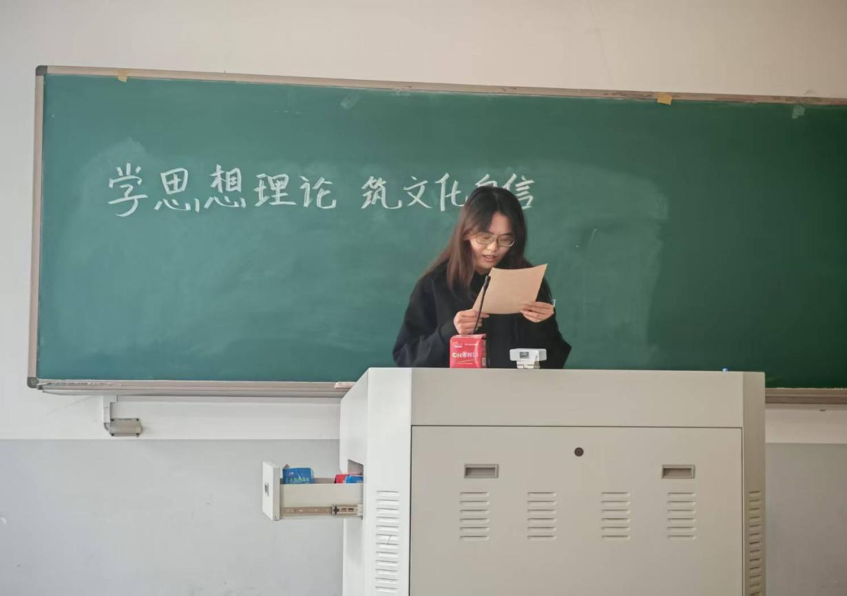 学生党支部于4月8日中午在龙子湖校区教学楼E107开展了以“学思想理论,筑文化自信”为主题的党课活动。