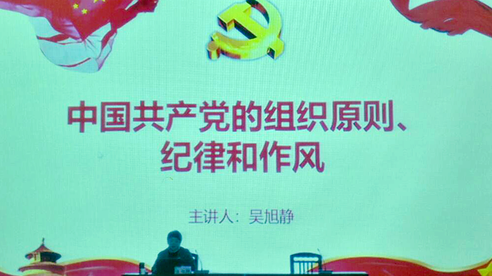 党委书记吴旭静为学员开展第四讲《中国共产党的组织原则、纪律和作风》。她结合了民主集中制的内涵、基本原则和发展历程,提出新时期应坚持和完善民主集中制,严格遵守和执行党的纪律。理论联系实际的作风,密切联系群众的作用,批评与自我批评的作风为党的三大优良作风,以此她强调学员要继承和发扬党的优良作风,努力建设廉洁校园文化。