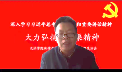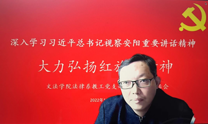 法律系教工党支部以“深入学习习近平总书记视察安阳重要讲话精神,大力弘扬红旗渠精神”为主题召开专题组织生活会,会议以线上的方式进行,支部全体党员参加了会议。会议由法律系教工党支部书记韩宁主持,杨红朝副院长以普通党员身份参加此次会议。