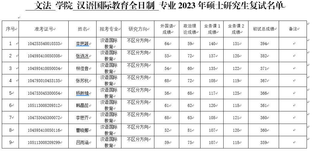 太阳城App 调剂复试名单2023年硕士研究生复试名单