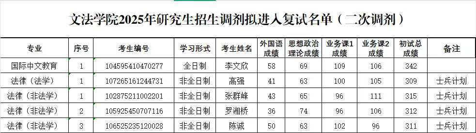 太阳城App 2025年研究生招生调剂拟进入复试名单(二次调剂)公示