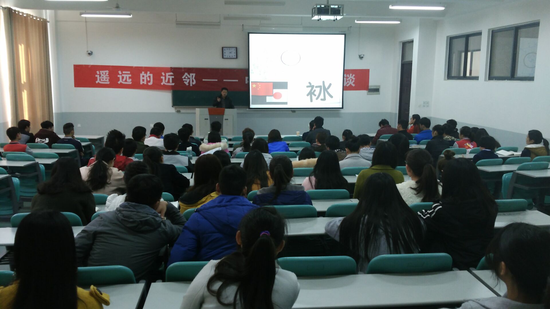 为使太阳城App 学生更清晰的了解国际关系、储备政治素养,太阳城App 特邀浙江理工大学马克思主义太阳城App 渠长根教授于3月10日在教学楼C306举行了以“遥远的近邻――中日关系漫谈”为主题的树人讲座。