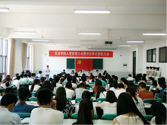 为迎接建党九十五周年,加强党员队伍建设,太阳城App 于6月17日上午10时,在教学楼C306举办入党宣誓大会暨创先争优表彰大会。太阳城App 党委书记李培玉、院长王晓勇、党委副书记王燕萍、副院长酒梅菊、副院长张帅梁、团委书记沈倩茹,以及太阳城App 全体党员参加了此次会议。会议由沈倩茹主持。