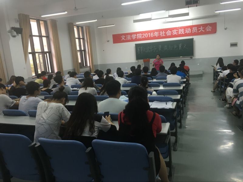 首先团委书记沈倩茹传达了2016年暑期社会实践的主题和基本内容,详细介绍了社会实践的背景、目的和意义。然后,院党委副书记王燕萍对社会实践提出了几点要求,她强调:一要把握红色主题。以建党95周年和长征80周年为契机,认真落实,突出文法特色。二要突出宣传。各实践分队要充分运用新媒体等扩大社会影响力。三要注意安全。实践过程中,各成员要在实践过程中注意饮食安全、用电安全和人身安全,希望大家高高兴兴实践、开开心心归来。