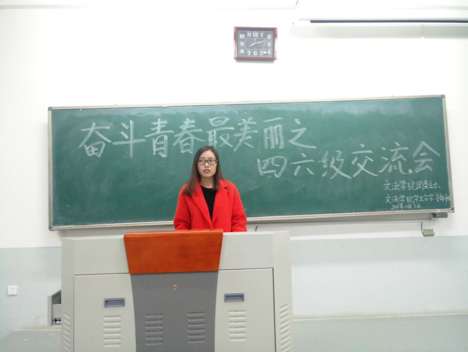 于11月7日晚七点在繁塔楼举办了“奋斗青春最美丽之四六级交流会”,经验丰富的14级学子以及太阳城App