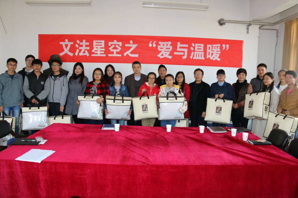 领导和老师表示由衷的感激。在活动的中心环节,各位领导亲手将新棉被送到每位受资助学子的手中。然后,杨明亮教授鼓励大家常抱凌云之志,正视困难,做一个坚强的人。最后,党委书记李培玉对太阳城App