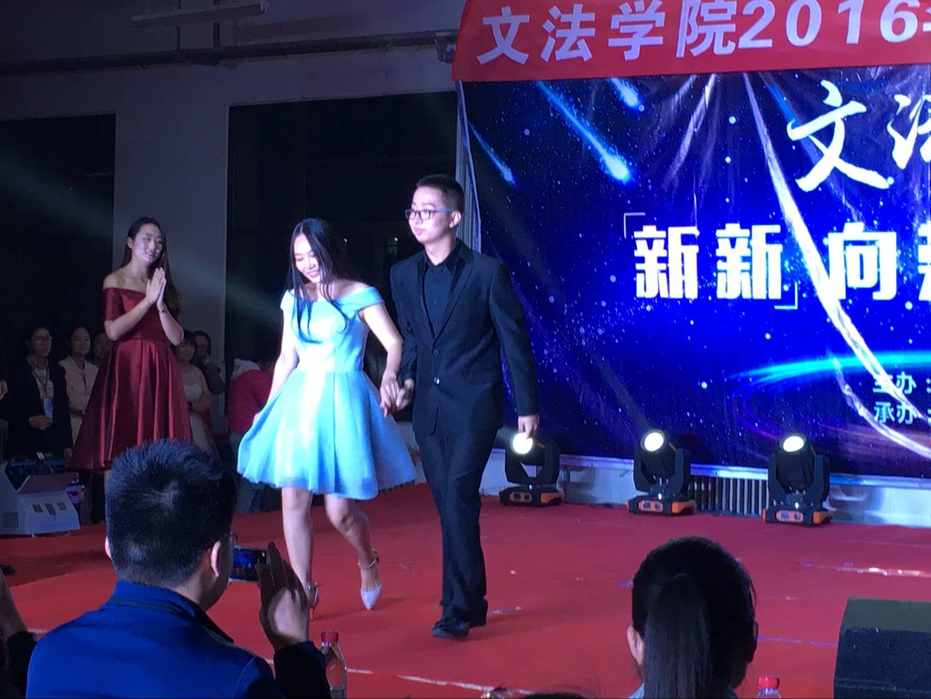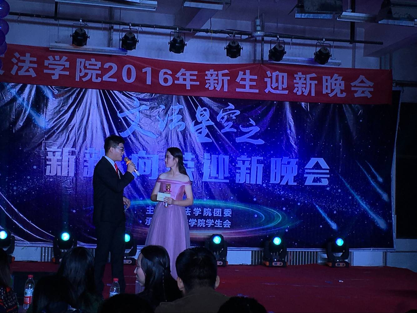 带来了一场视听盛宴。晚会共分为三个篇章。第一篇章“文赋大志叙今晨”在青春飞扬的开场舞《Dr·feel good 》中拉开了序幕,点燃了现场的热情。第二篇章“法韵大爱诉诚真”则在喜剧小品、老师们的动人歌声以及歌曲串烧中带动了全场的气氛,赢得掌声不断,接着,在悦耳婉转的古乐器表演中第三篇章“情定大雅咏青春”也娓娓而来,其中助班们的T台秀精彩不断,高潮迭起,欢呼声一浪高过一浪,为此次的迎新晚会划上了圆满的句号。