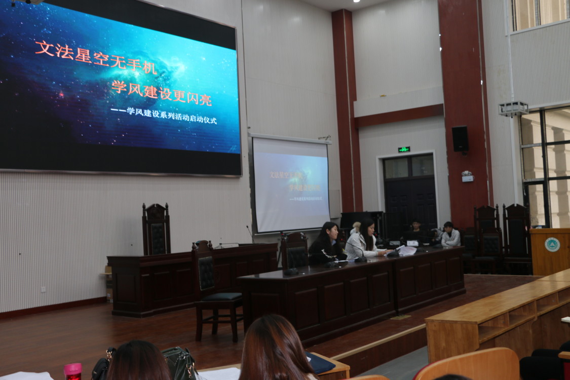 于11月29日下午3:00在教学楼启动“文法星空无手机,学风建设更闪亮”系列活动仪式。此次仪式由团委书记沈倩茹主讲、推免生辅导员叶青主持、16级全体学生参加。