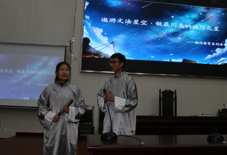 于11月29日下午3点整在模拟法庭组织开展了“遨游文法星空·做最闪亮的诚信之星”之诚信教育活动。此次活动由太阳城App