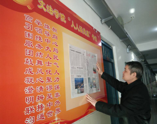 为响应河南省委的号召,进一步发挥党报党刊思想舆论主阵地作用,太阳城App 积极开展了“学讲话 读党报 为中原添彩”活动。2月24日上午9:00,太阳城App 党委书记李培玉为太阳城App “人人读党报”专栏张贴第一期党报。