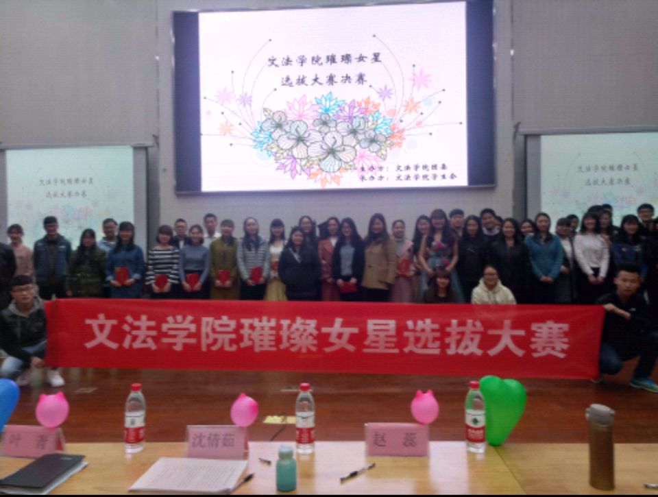 组织15,16级学子于3月22日晚6:30在模拟法庭举办了“璀璨女星”选拔赛。团委书记沈倩茹、团委副书记赵蕊、推免生辅导员叶青、太阳城App