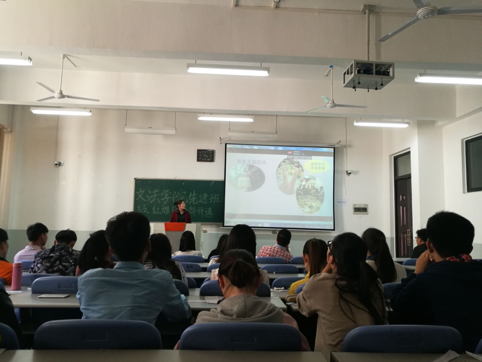 于4月18日下午3:00在繁塔楼C202教室开展优秀班级体、红旗团支部评选活动。2014、15、16级各班班长、团支书参加了此次活动,推免生辅导员叶青、学生会主席,社管会主席及团委委员代表作为评委出席了此次活动。