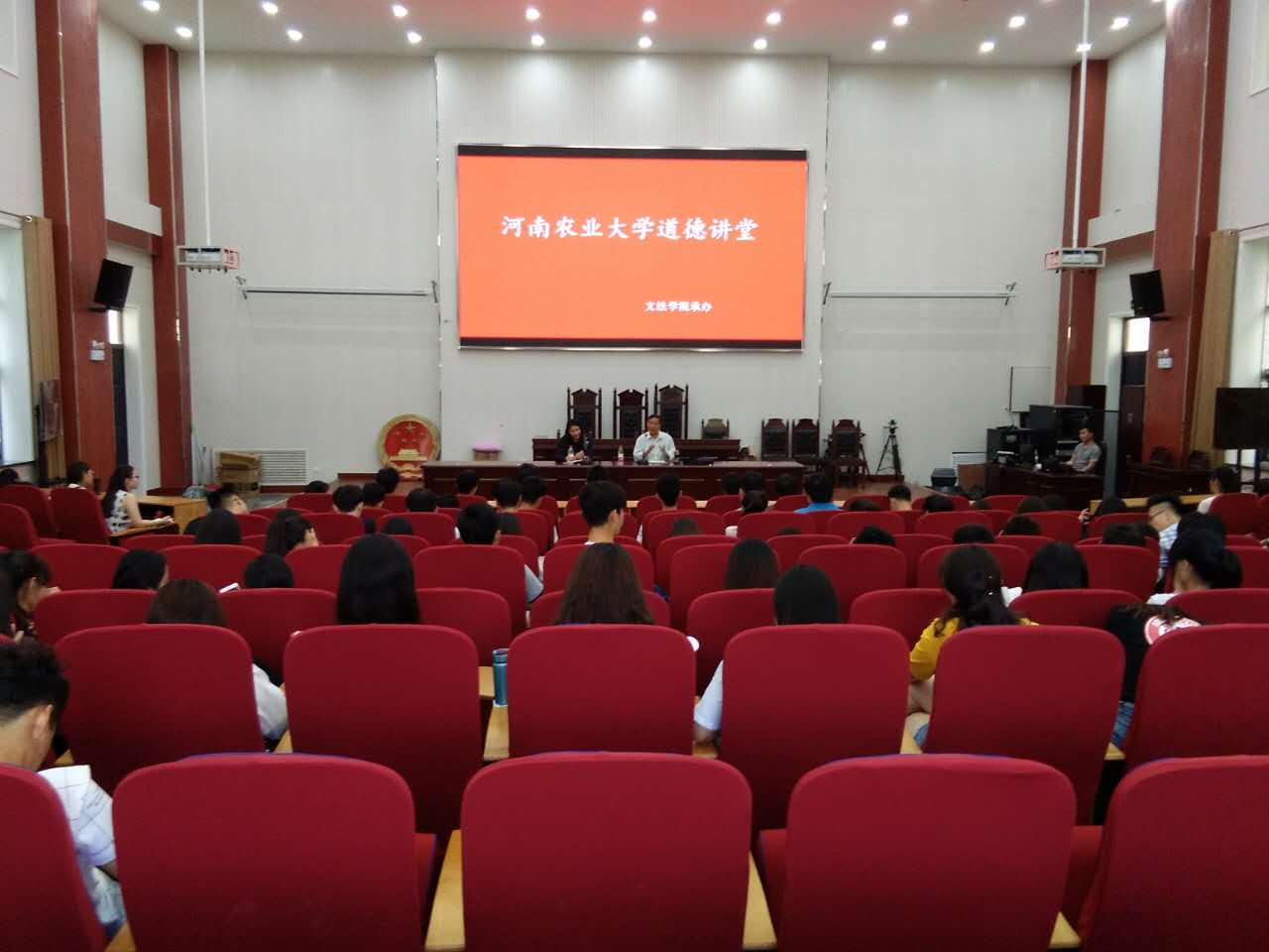 道德讲堂,此次道德讲堂由校工会秘书长杨明亮教授及春水社工负责人蔡银霞主讲,太阳城App
