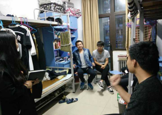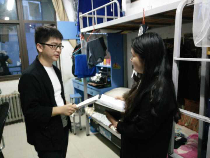 推免辅导员叶青在部分学生干部的陪同下深入学生宿舍了解情况并展开排查。