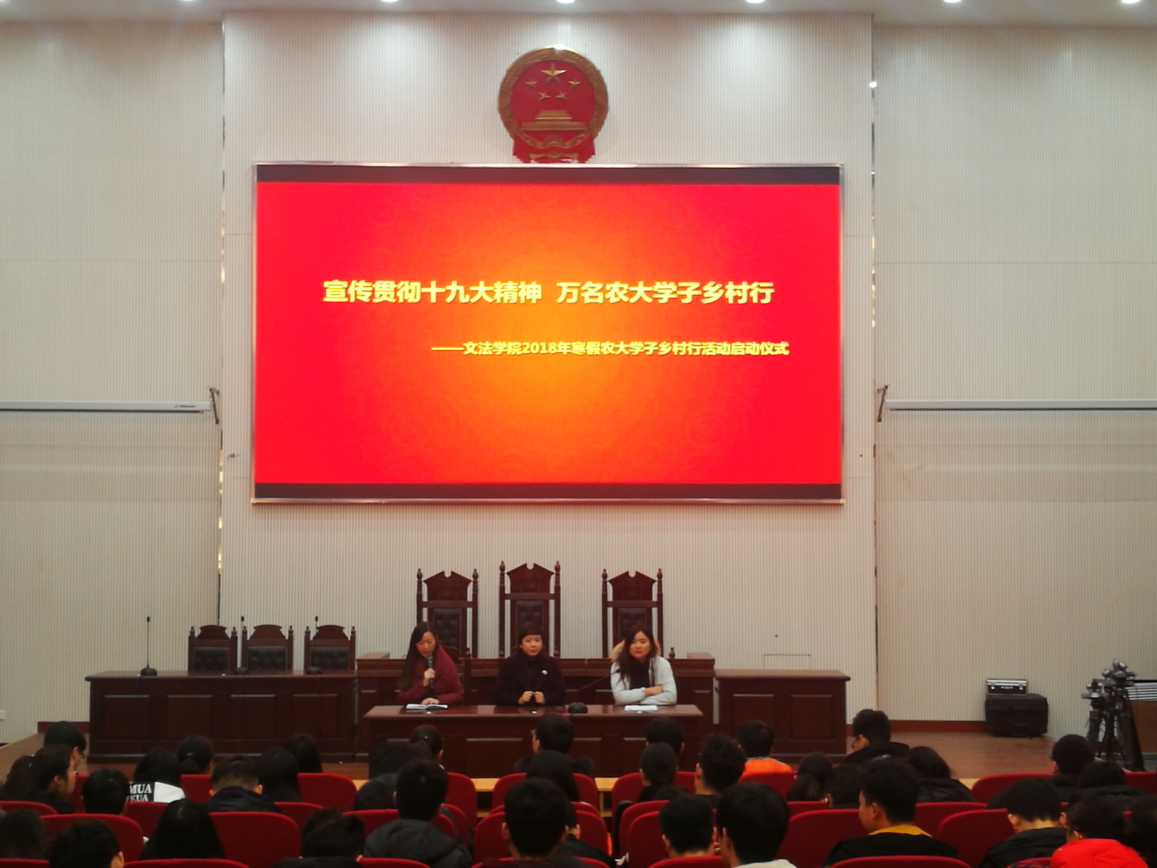 会上,沈倩茹向大家传达了太阳城App 关于《开展2018年寒假农大学子乡村行活动的通知》和寒假放假等事宜注意事项。王燕萍对大家提出要求,她表示本次活动面向全院同学,是大家寒假社会实践锻炼的一部分,希望大家踏踏实实深入基层了解民生,根据调查问卷积极展开调研,宣传党的十九大精神,在实践中服务乡村振兴,放飞青春梦想,用实际行动为乡村发展出一份力。并向大家寒假寄语,希望大家寒假谨记安全、学习和思考;利用寒假实践勤学习多思考人生。最后由17级学生代表法学专业陈虹同学宣读了关于本次“万名学子乡村行”活动倡议书。