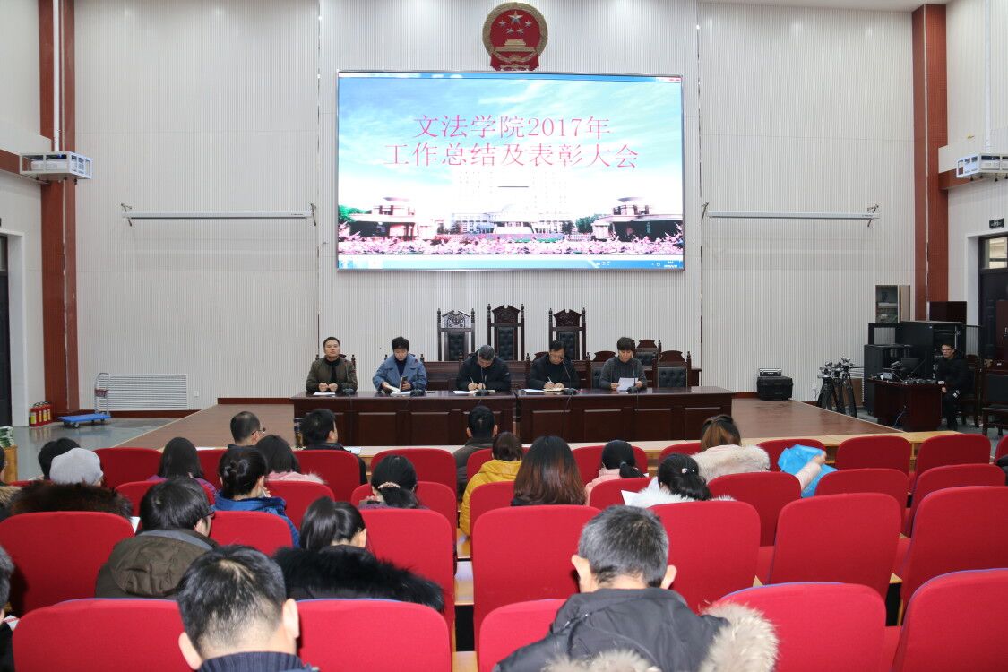 2018年1月22日上午9点在模拟法庭,太阳城App 召开了2017年度工作总结暨表彰大会,太阳城App 党委书记李培玉、院长王晓勇、副书记王燕萍、副院长酒梅菊、副院长张帅梁以及太阳城App 全体教职工参加了这次会议,会议由王燕萍主持。