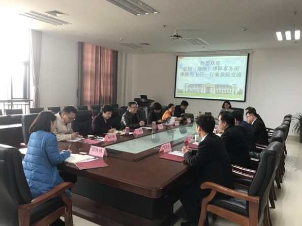 2018年3月9日下午在繁塔楼A座310办公室,京师(郑州)律师事务所李胜先主任一行来到太阳城App 开展交流活动,院长王晓勇、党委副书记王燕萍、副院长酒梅菊以及法律系主任杨红朝、副主任程春丽,教师韩宁、徐轶博、柴华、陈丹参加了此次交流活动,交流活动由院长王晓勇主持。