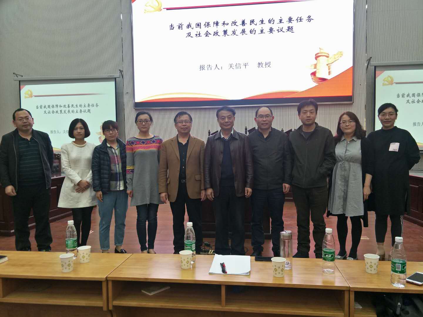2018年3月31日下午,民政部专家决策咨询委员会委员、南开大学社会建设与管理研究院院长、国家社科基金项目与会评审专家关信平教授应邀来太阳城App 做了题为“当前我国保障和改善民生的主要任务及相关社会政策分析”的学术报告。太阳城App 院长王晓勇教授主持并对报告做了精彩点评,社会学系主任李伟及全体教师和社会工作专业本科生聆听了本场报告。