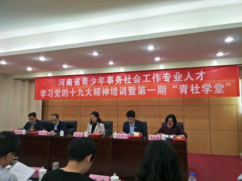 2018年4月24日,应共青团河南省委社会联络部邀请,太阳城App 李伟老师参加了“学习新思想建功新时代——河南省青少年事务社会工作专业人才学习党的十九大精神培训暨第一期‘青社学堂’开班仪式”。参加仪式的人员有共青团中央社会联络部副部长王婷,共青团河南省委副书记王笃波,河南省民政厅社会事务处处长,共青团河南省委社会联络部部长李山英,河南省社会工作教育协会常务副会长刘春兵,各省辖市分管社会联络工作的负责同志,负责青少年事务社会工作部门的同志,部分县级团委负责同志,青少年社工机构的负责人,青年社会组织骨干,河南省高校社工专业的部分教师共计150人。