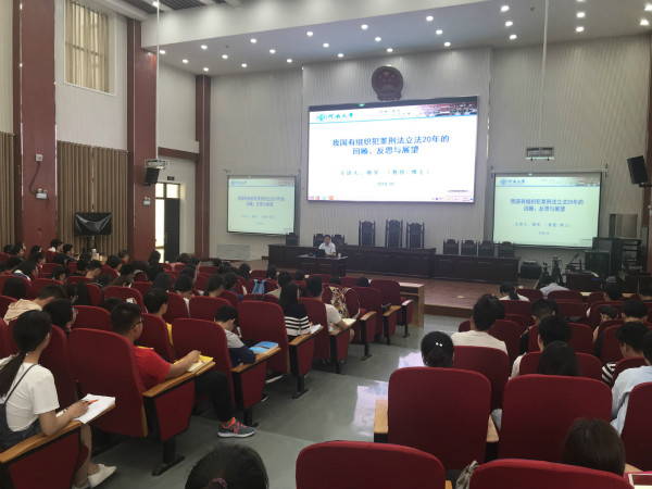 2018年5月9日下午,河南大学法太阳城App 院长、河南省第二届“优秀中青年法学家”蔡军教授应邀在太阳城App 模拟法庭做了题为“我国有组织犯罪刑法立法20年的回顾、反思与展望”的学术报告会。太阳城App 法律系200多名师生代表参加,太阳城App 院长王晓勇教授主持报告会。