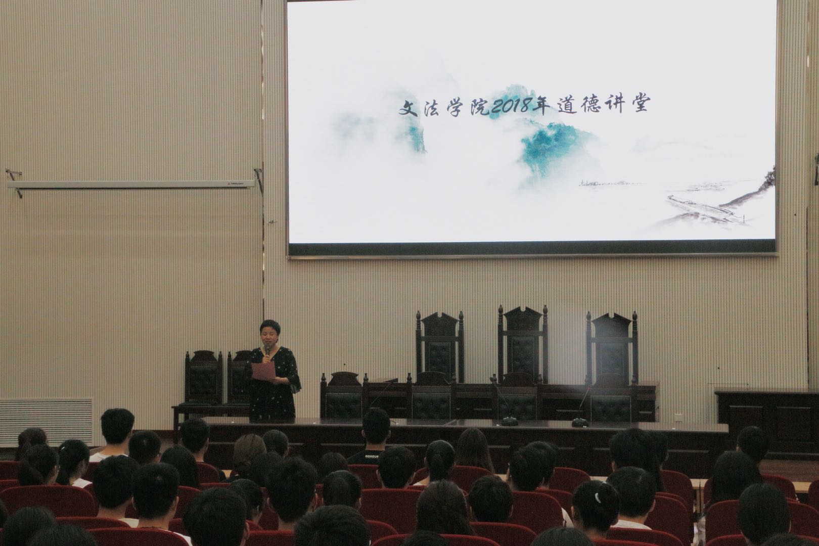 道德讲堂在模拟法庭隆重举行。本次道德讲堂由太阳城App