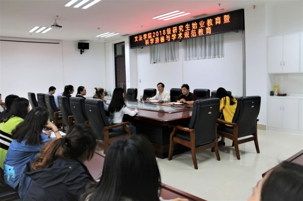 会议开始,王晓勇院长以努力成为一名合格的三年制研究生和科学道德与学术规范的意义为内容为2018级研究生做报告,并就如何成为一名优秀的研究生提出了三点建议;首先要坚持理论与实践相结合,学好专业知识,了解农业管理相关理论,了解国家尤其是农业政策,三农问题;其次要注重德智体全面发展,政治上积极追求进步,思想上健康积极;三是要坚持创新与求是相统一,要有独立思考和理论创新的意识,更要坚持实事求是的精神,严守科学道德和学术规范,并详细讲解了学术规范的相关文件及重要意义。