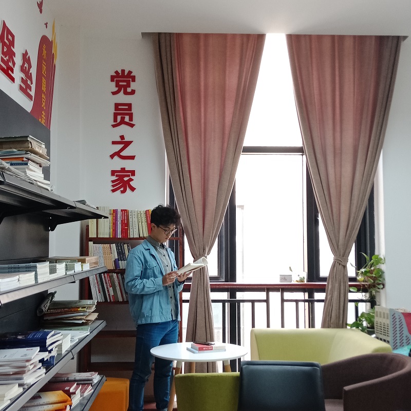 “党员之家”里悬挂了党旗、党徽、三会一课制度,配置了书柜、报架和各类党建书籍、各种学习资料等,如《之江新语》、《习近平谈治国理政》、《习近平的七年知青岁月》、《平易近人》、《中国共产党第十九次全国代表大会文件汇编》等百余册书以供各级党组织学习和参考。