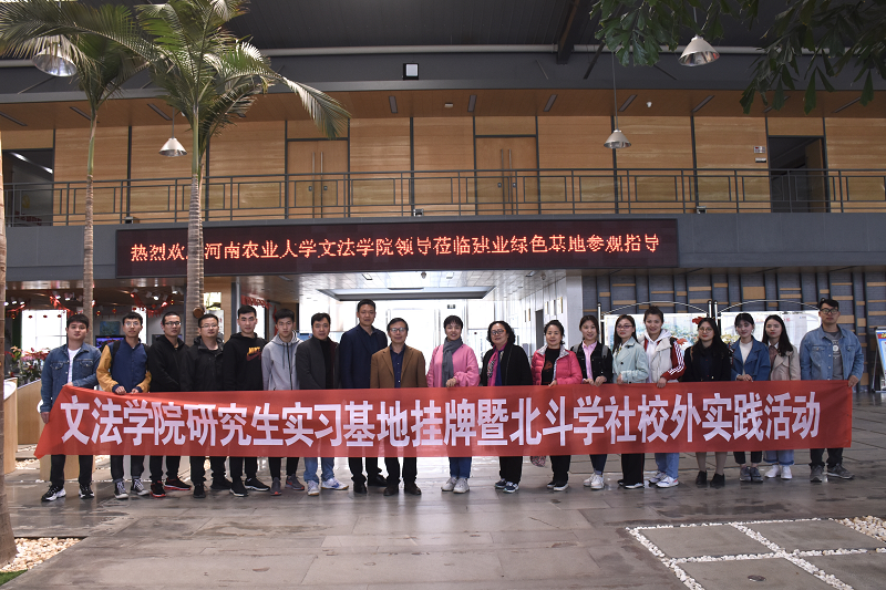 教师金琳、赵意焕带领18级农业管理研究生奔赴许昌鄢陵与“建业绿色基地”举行研究生实习基地挂牌仪式暨北斗学社校外实践活动。