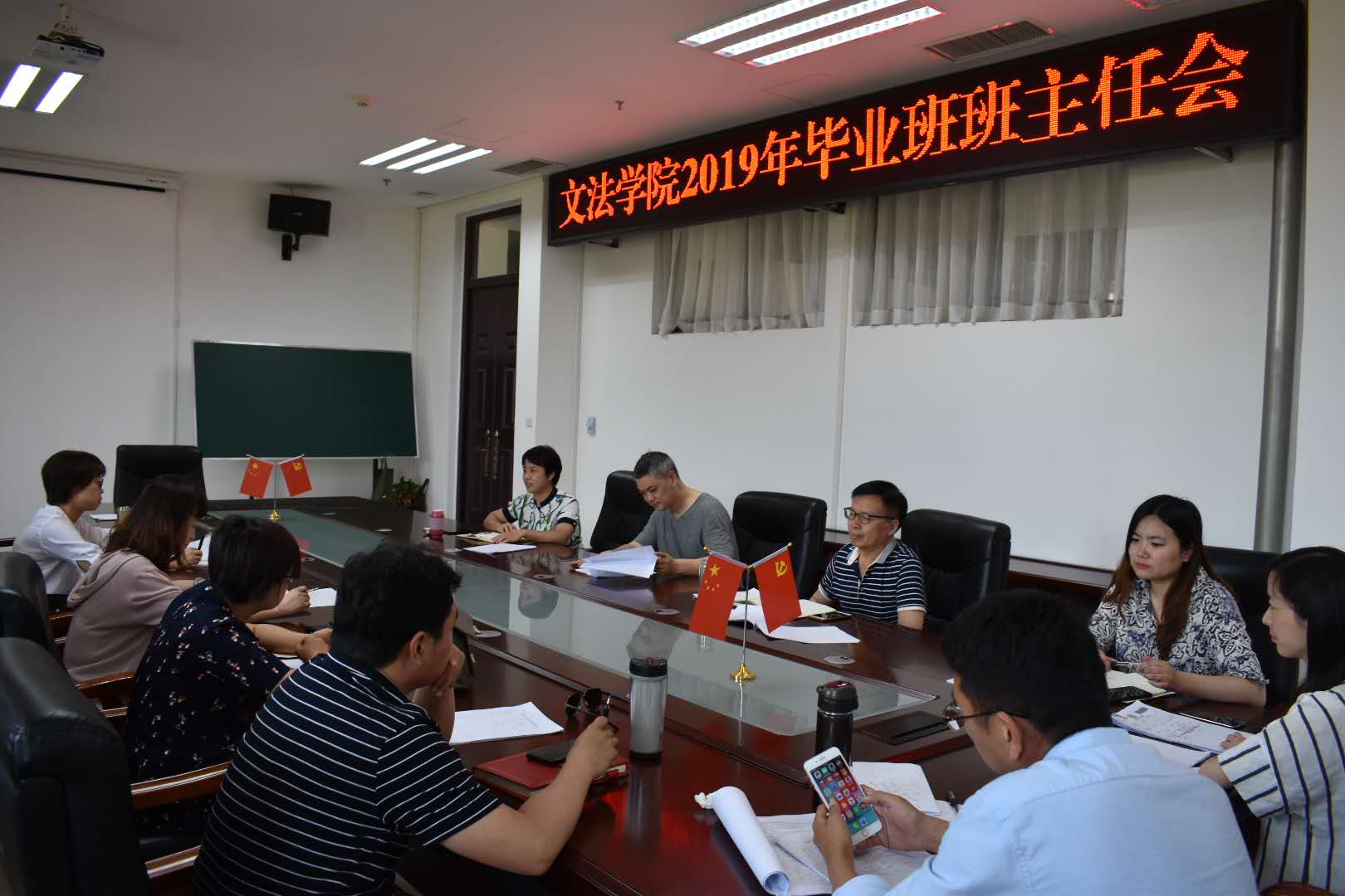 19届毕业生毕业安排、就业去向、安全稳定等相关工作进行简要介绍,并对各毕业班班主任提出工作要求:一、要求班主任加强人文关怀,保证联系畅通;二、对“三支一扶”、西部计划、应征入伍工作作出详细安排;三、重点关注特异质学生,关注就业困难学生;四、各班班主任要积极了解每个学生毕业期间的具体问题和需求。各毕业班班主任就促进毕业生就业和促进毕业生文明离校等问题展开讨论。
