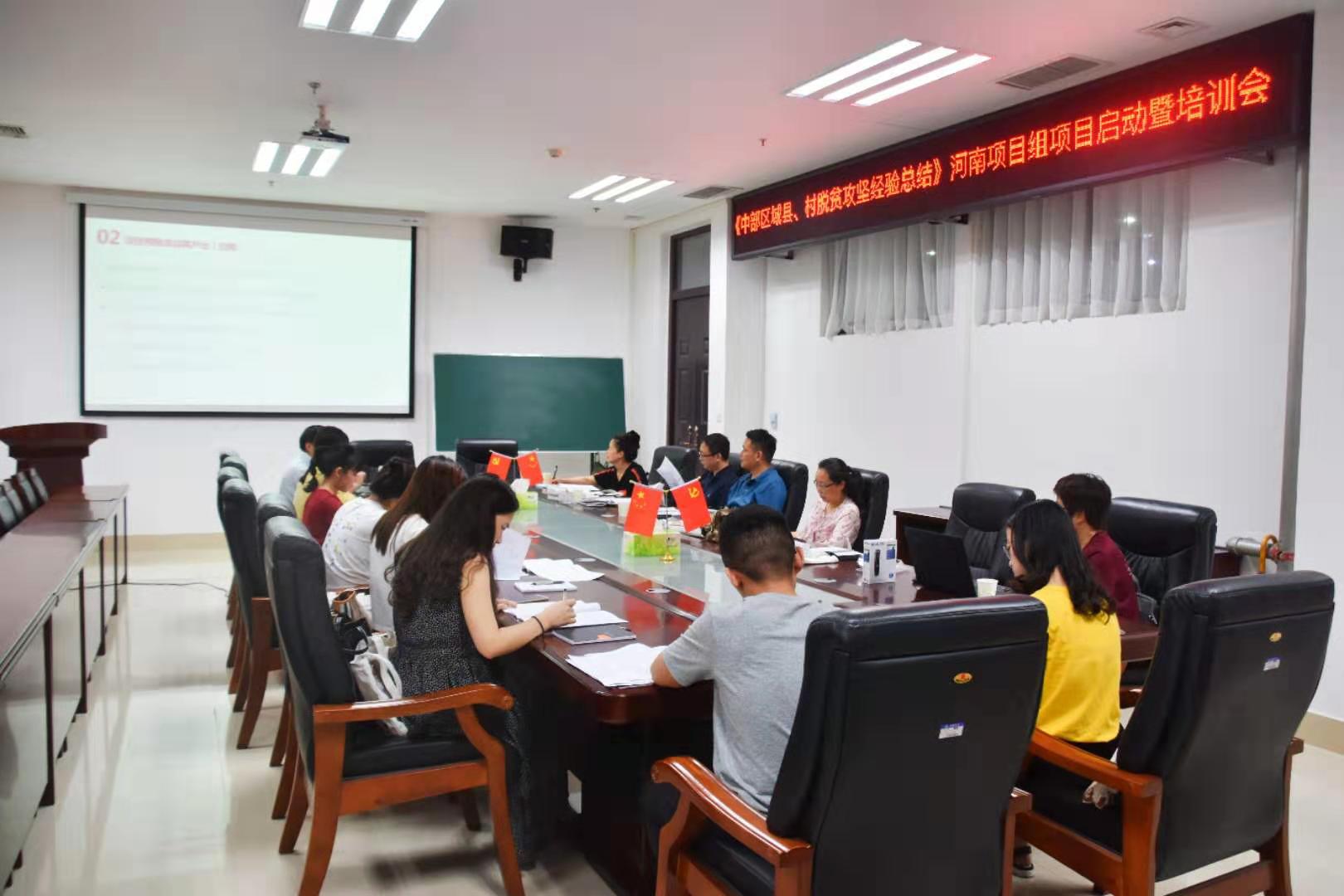 2019年8月21日上午,太阳城App 在龙子湖校区教学楼A310召开《中部地区县、村脱贫攻坚经验总结》河南项目组项目启动暨培训会。王晓勇、张颖举、谢娅婷、程春丽、赵意焕、王睿、张二龙等项目组全体成员参加会议。