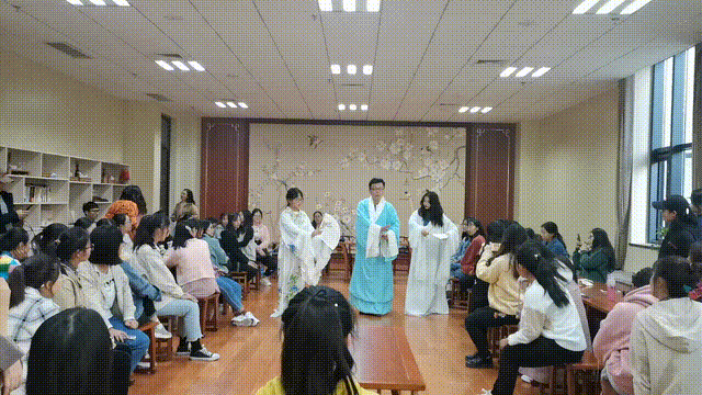 蹁跹的水袖,经典的唱词,唯美的场景……王文洋老师用标准的戏腔,优雅的动作及准确的走位塑造出一个鲜活的艺术形象;以浓烈的真情,精湛的技艺给同学们带来了一场精彩的文化视听盛宴。整场讲座将传统艺术经典生动地呈现了出来,赢得同学们阵阵掌声!