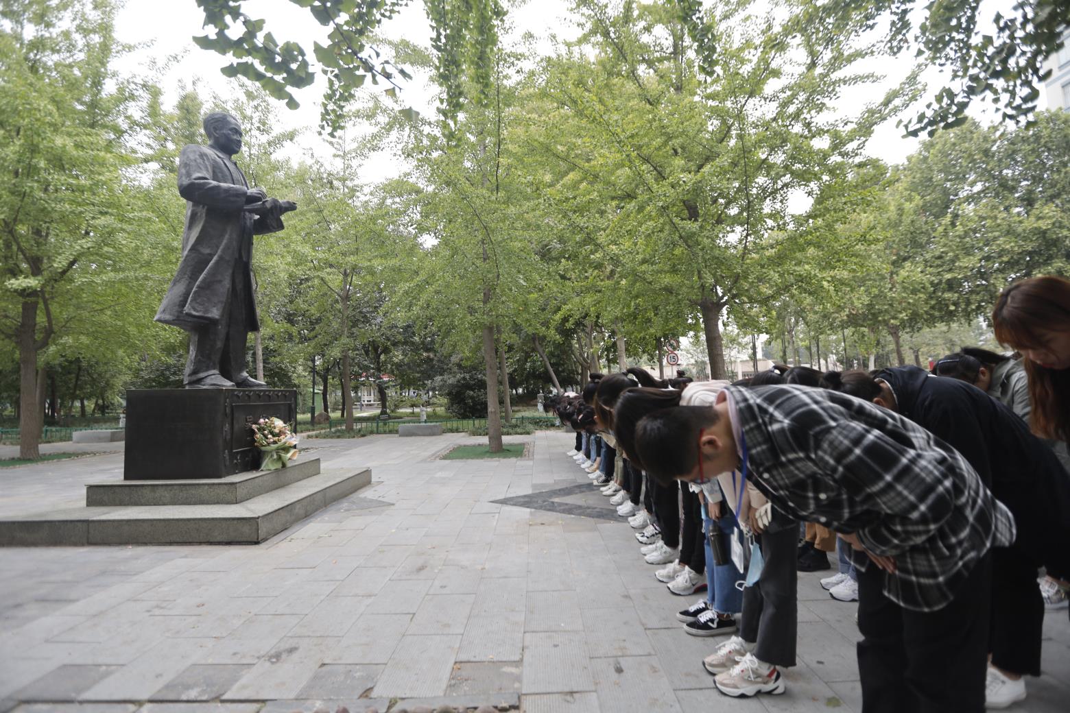 参观校史馆后,2020级新生瞻仰了吴绍骙先生的雕像,了解了吴绍骙先生为我国玉米育种做出的突出贡献,并参观了文化路校区的校园风光,在工程楼前合影留念。