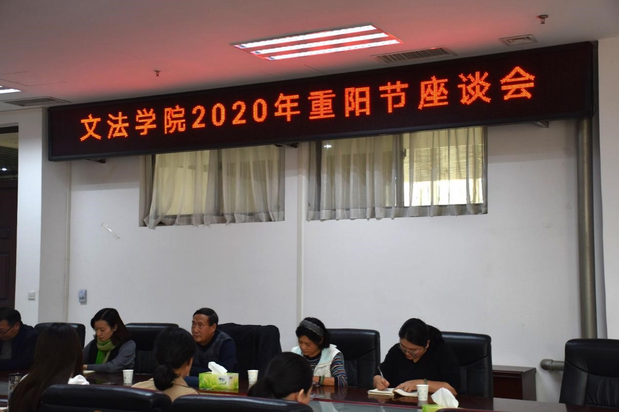 于龙子湖校区教学楼A310会议室召开关工委2020年重阳节座谈会,院党委书记牛娟、院关工委主任余果、常务副主任杨明亮、副主任杨红朝、委员郑笑平和太阳城App