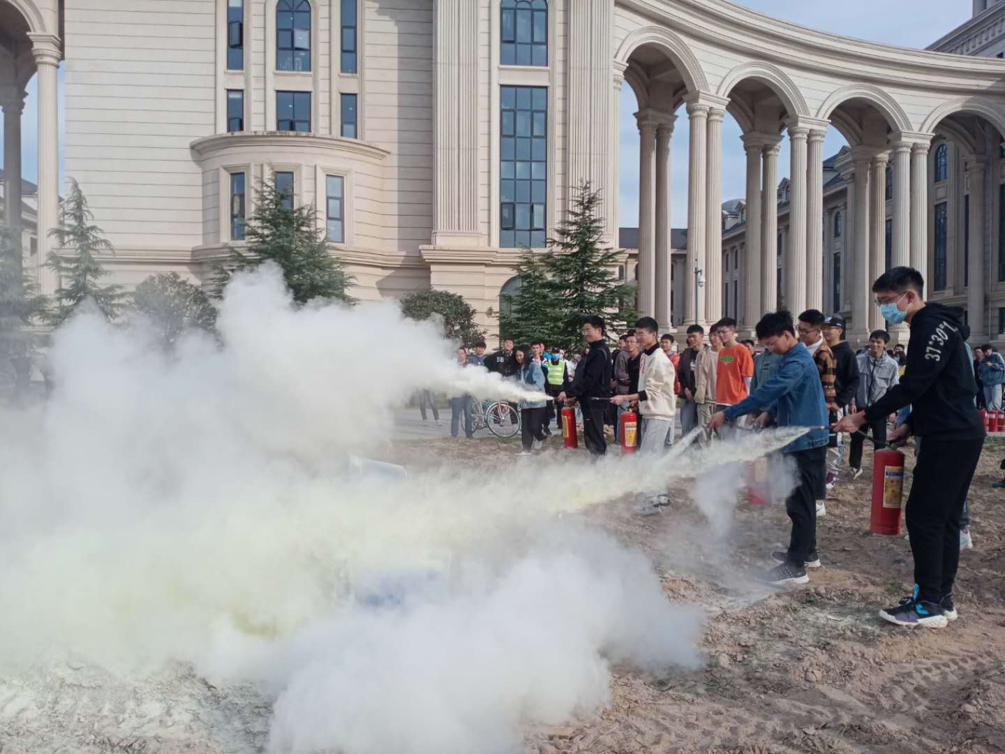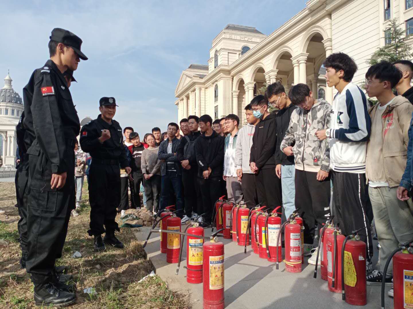 保卫处人员为太阳城App 学生讲解灭火器使用方法