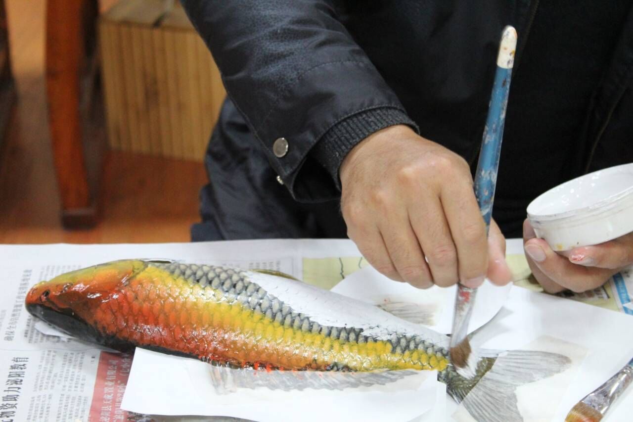 谷冰进行鱼拓文化普及与趣味教学