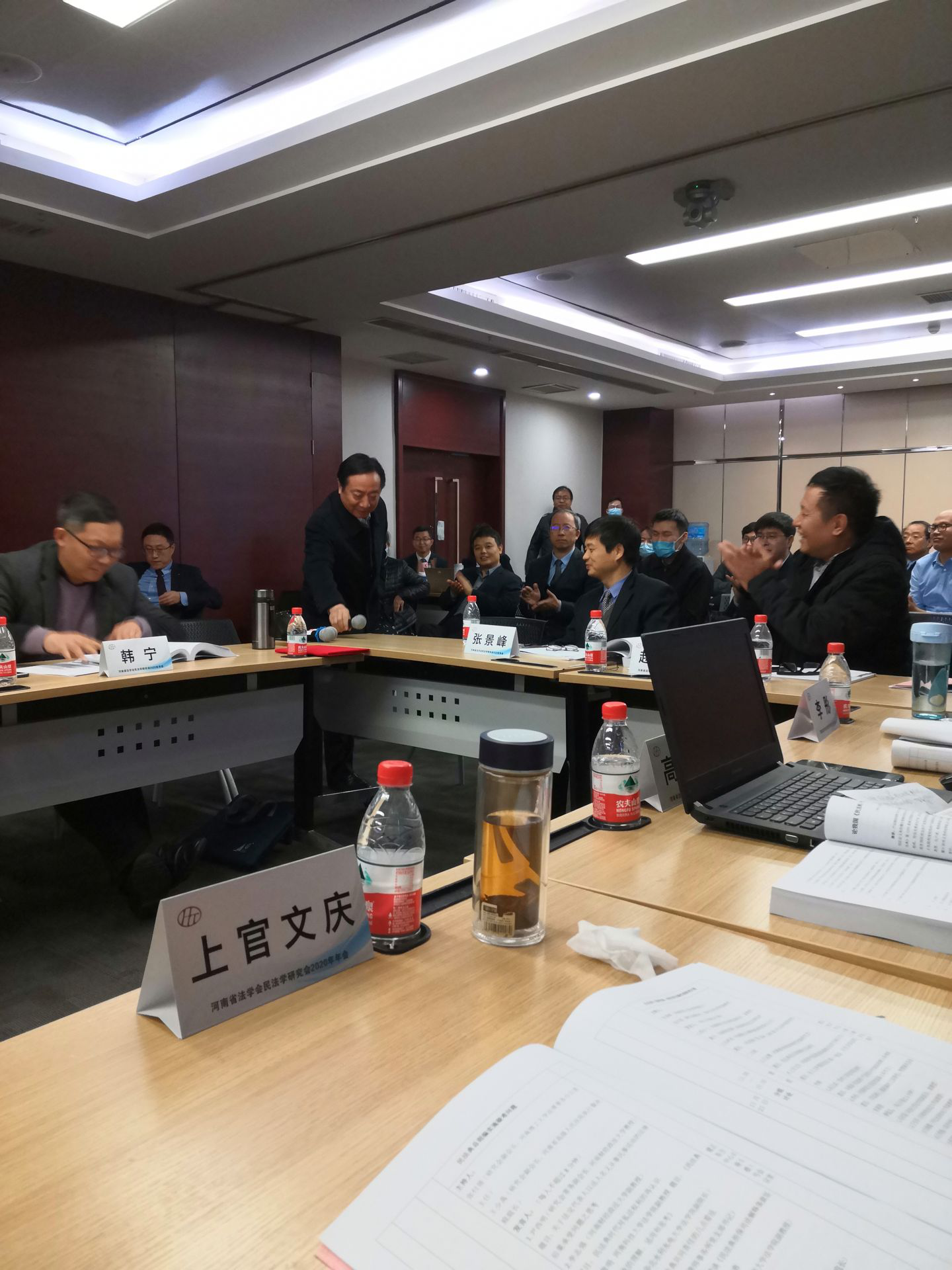 杨红朝副院长和韩宁、马开轩等法律系老师参加。韩宁副教授提交的年会论文《承包地“三权分置”下<农村土地承包法>修正评析——兼评<民法典>的有关规定》获得年会论文特等奖。此次年会会期1天,以 “《民法典》实施疑难问题”为议题。上午主要开展主旨演讲活动,民法学研 究会田土城会长做《<民法典>时代的法律思维》的主旨演讲,民法学研究会副会长李宝甫做《学习民法的状态——向着生活、朝着太阳》的主旨演讲。下午从《民法典》总则编实施疑难问题、《民法典》人格权编与侵权责任编实施疑难问题、《民法典》合同编实施疑难问题、《民法典》物权编实施疑难问题四个方面分为四组进行学术研讨。韩宁副教授在《民法典》人格权编与侵权责任编实施疑难问题小组,作为评议人对发言人发言进行了点评。