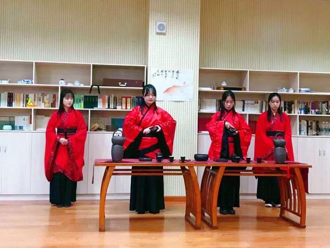 汇报演出第一阶段为:共享茶韵悠悠。一片树叶遇水而发,自远古到当下铸就无数传奇,茶不仅是生活更是诗与远方。整场茶艺表演动作与音乐浑然天成,手腕翻圆,招式变幻无穷,套路行云流水。第二阶段为:共赏琴声绵绵。熟练的弹奏技巧,层次清晰的音乐表现,展现出琴曲的意境深远。