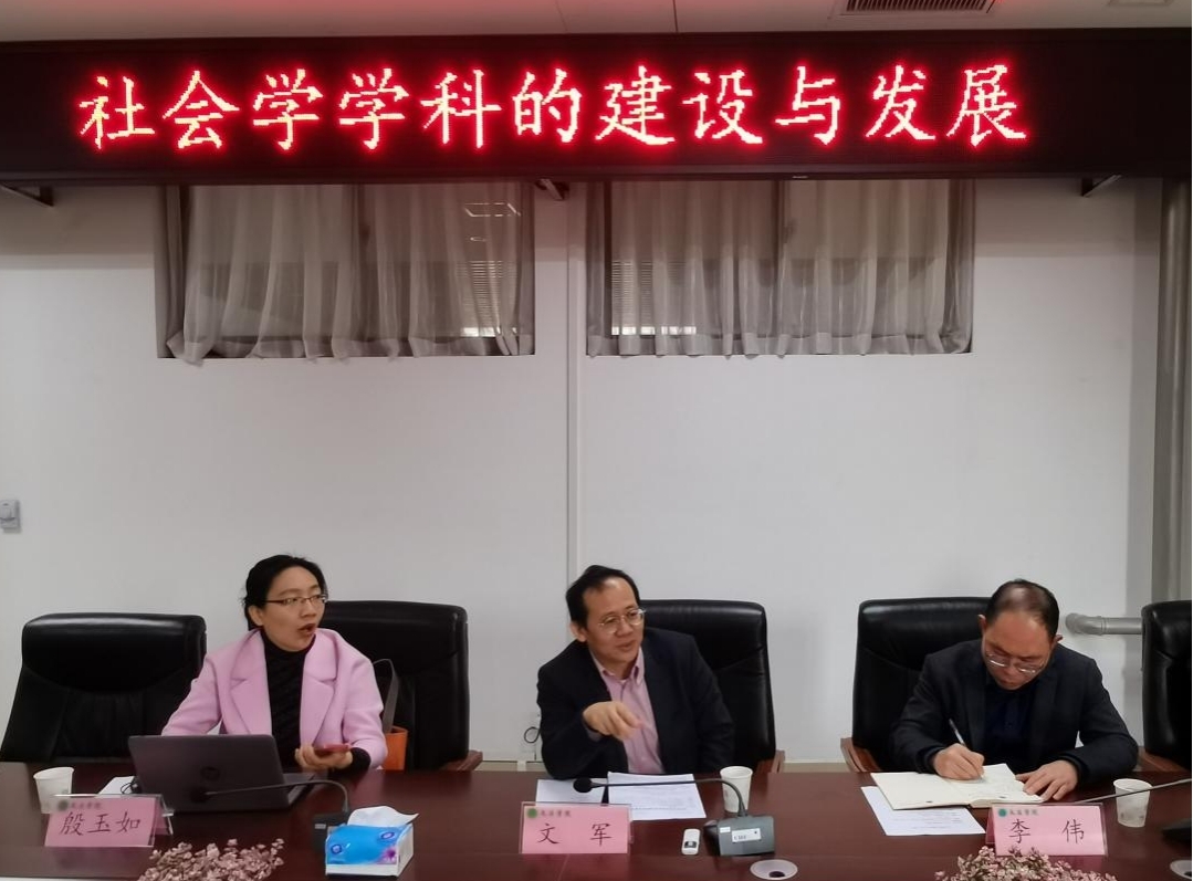 邀请教育部社会学类教指委副主任委员文军教授举行“社会学学科的建设与发展”座谈会。副院长杨红朝和部分师生代表参加了座谈会,座谈会由院副院长李伟主持。