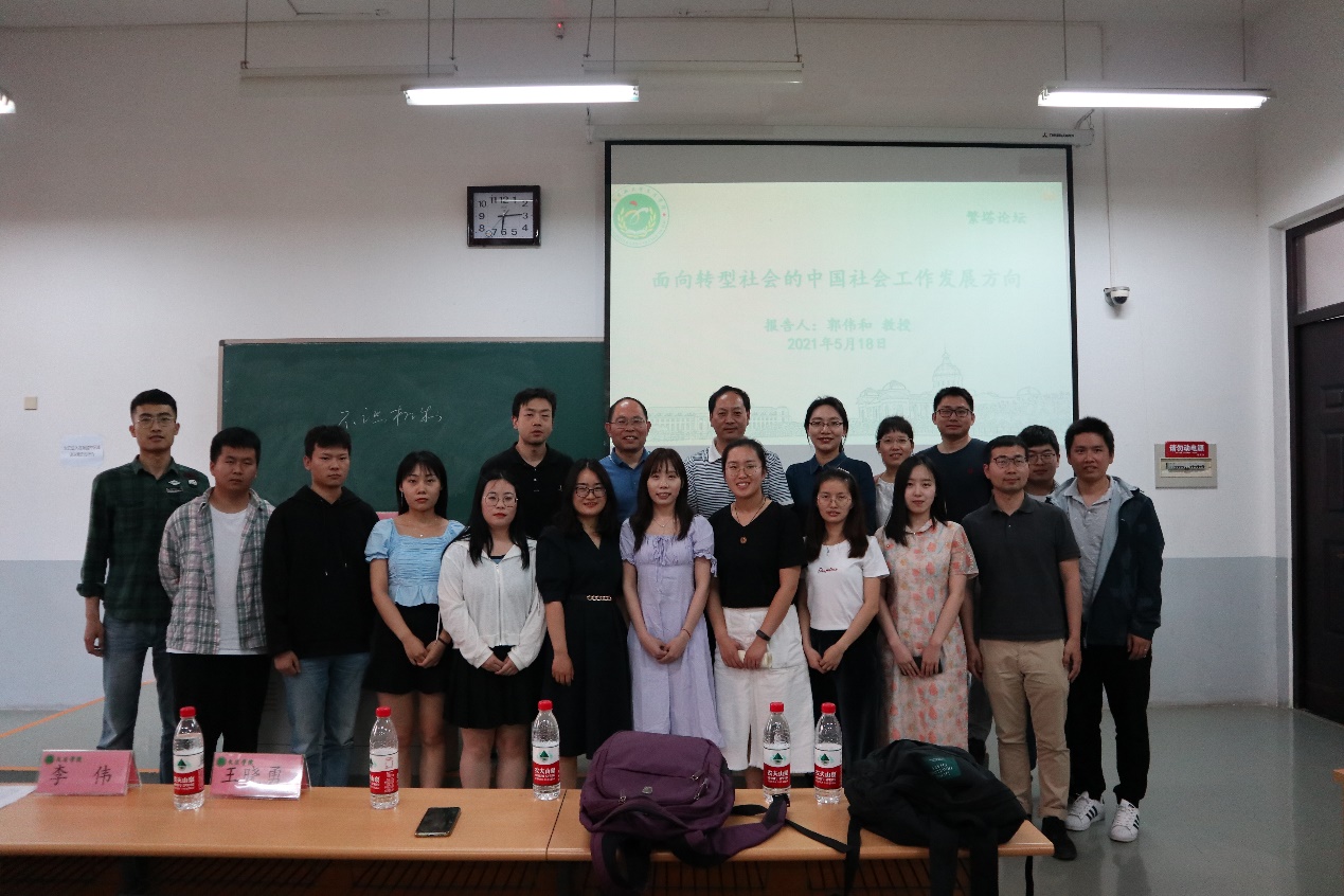 郭伟和从社会工作研学之路、如何跳出制度嵌入与专业自治的困境、面向现代化转型的中国社会本体、对西方社会工作的实物理论及其条件的反思和迈向反身实践的中国社会工作创新之路五个方面向师生详细展开讲述,帮助师生梳理社会工作的发展和起源以及社会工作的理论脉络。互动环节,郭伟和对部分师生提出的问题进行了详细专业地解答,与会师生受益匪浅。(文/李方圆 图/孔敬超)