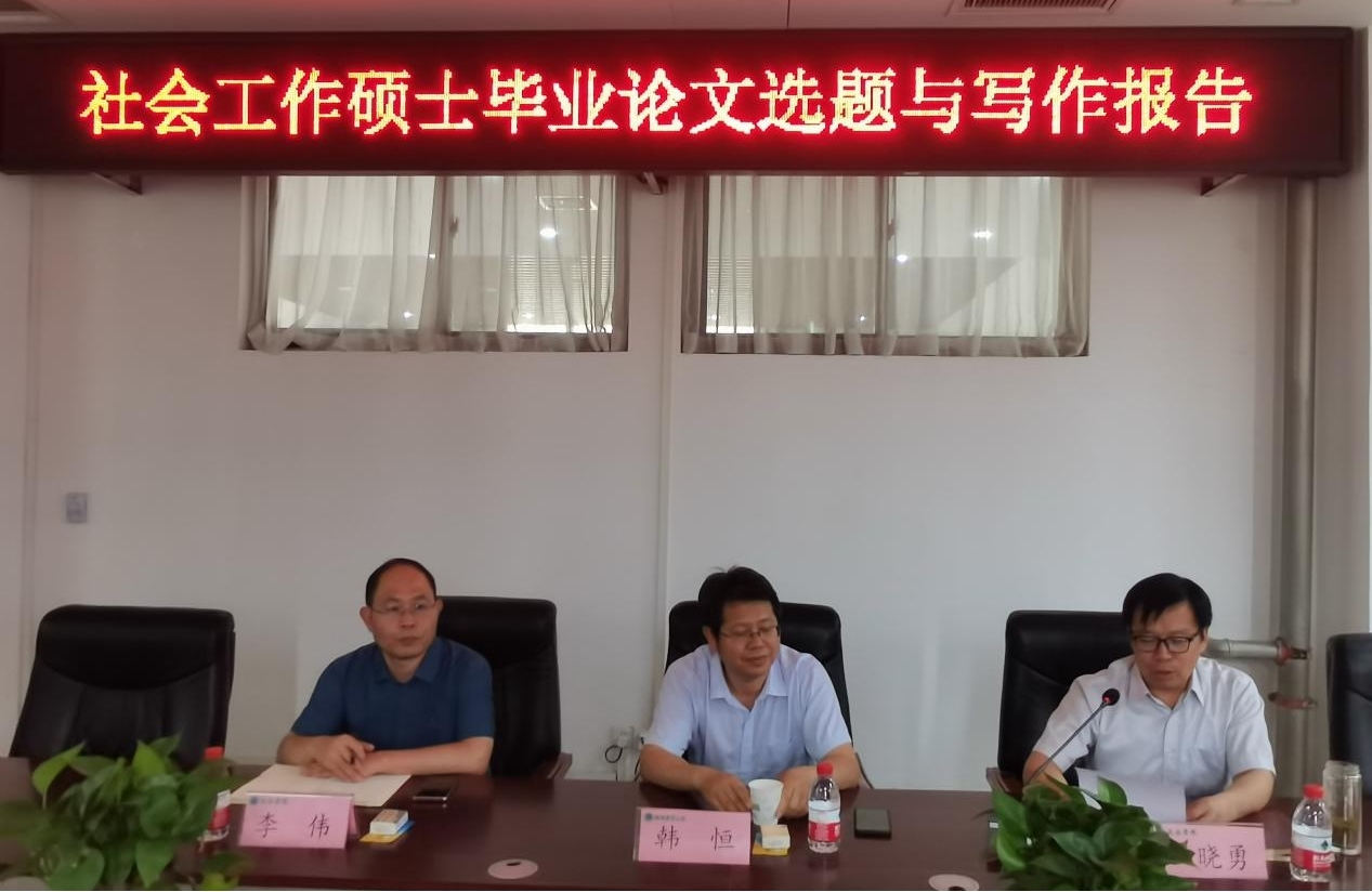 “繁塔论坛”,作题为“社会工作硕士毕业论文选题与写作”的报告。报告会由院长王晓勇主持,副院长李伟、社会学系老师以及20级社会工作研究生和农业管理研究生参加了此次报告会。