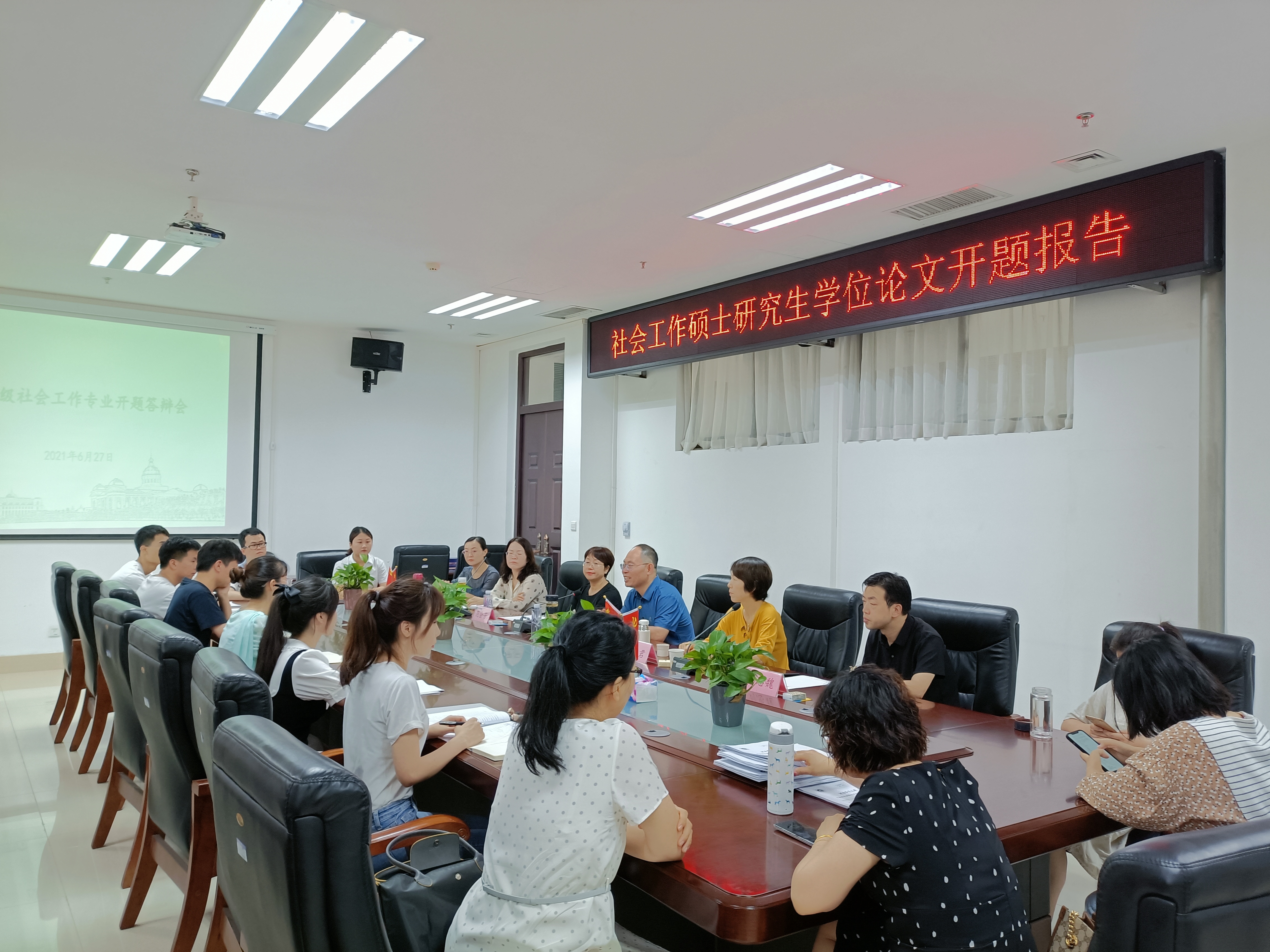 关于研究生学位论文的选题及开题报告的要求》有关要求,为确保研究生学位论文的质量,切实做好研究生过程管理,提高研究生培养质量,2020级社会工作专业硕士研究生,采用分组形式于繁塔楼A310、A418举行学位论文开题预答辩。校外导师河南省民政厅调研慈善事业促进与社会工作处二级调研员吴艳君、龙腾社会工作服务中心理事长范会芳、副院长李伟、社会学系研究生导师参加了本次预答辩。