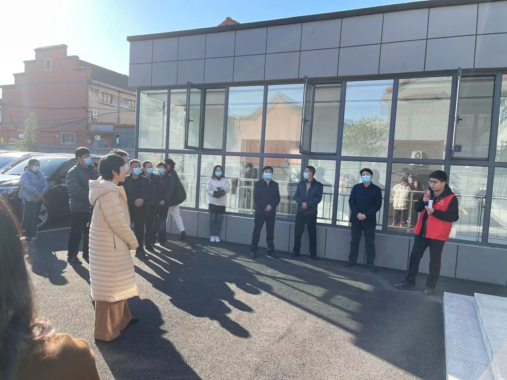 在介绍完社工站的基本建设情况之后,顾炎作为介绍人,带领到访领导参观办公场地的阵地打造情况及个案室、小组室和功能室使用情况。
