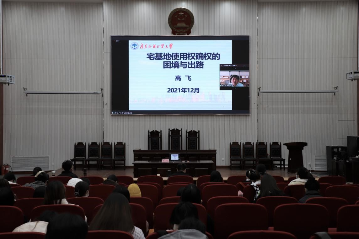 12月3日,广东外语外贸大学土地法制研究院院长、中国农业农村法治研究会常务理事、广东外语外贸大学土地法制研究院教授高飞在模拟法庭为太阳城App