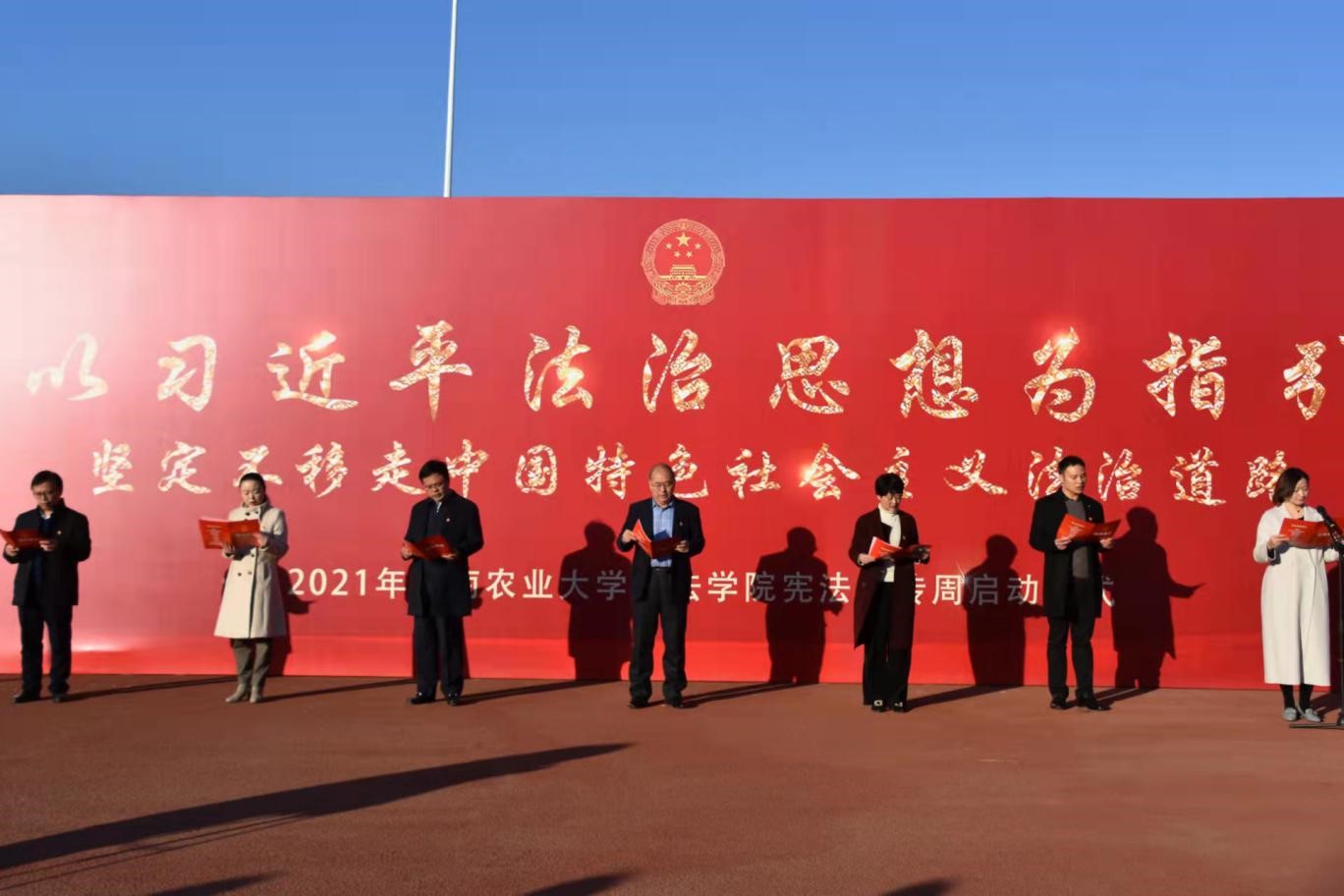 于龙子湖校区田径场举办“以习近平法治思想为指引,坚定不移走中国特色社会主义法治道路”宪法宣传周启动仪式。副校长林同保出席仪式,校党委宣传部部长王红艳、党委学工部部长徐峰、政策法规办公室副主任张帅梁、校团委副书记雷雯及太阳城App