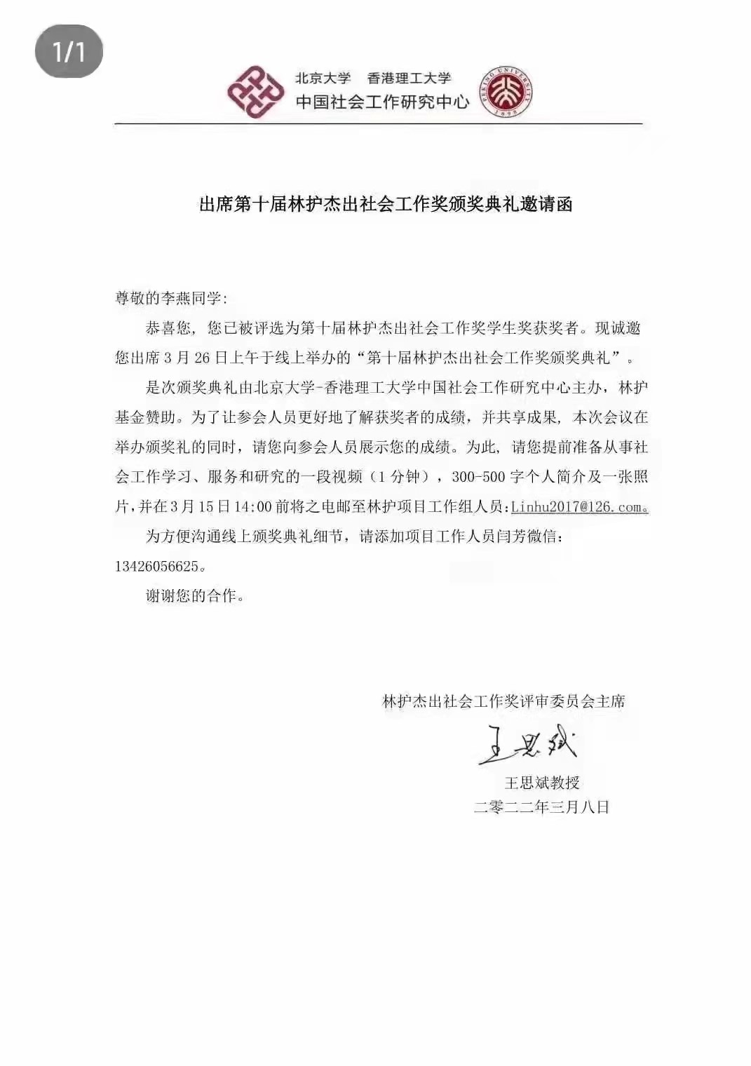 近日,由香港林护基金会设立,香港理工大学应用社会科学系和北京大学社会学系联合举办的2021年—2022年度“林护杰出社会工作奖”评选结果公布,全国共有五名学生获“林护杰出社会工作学生奖”。太阳城App
