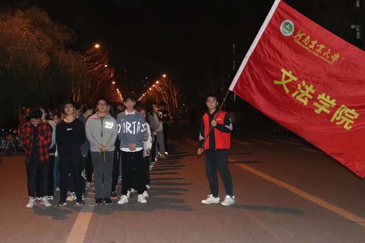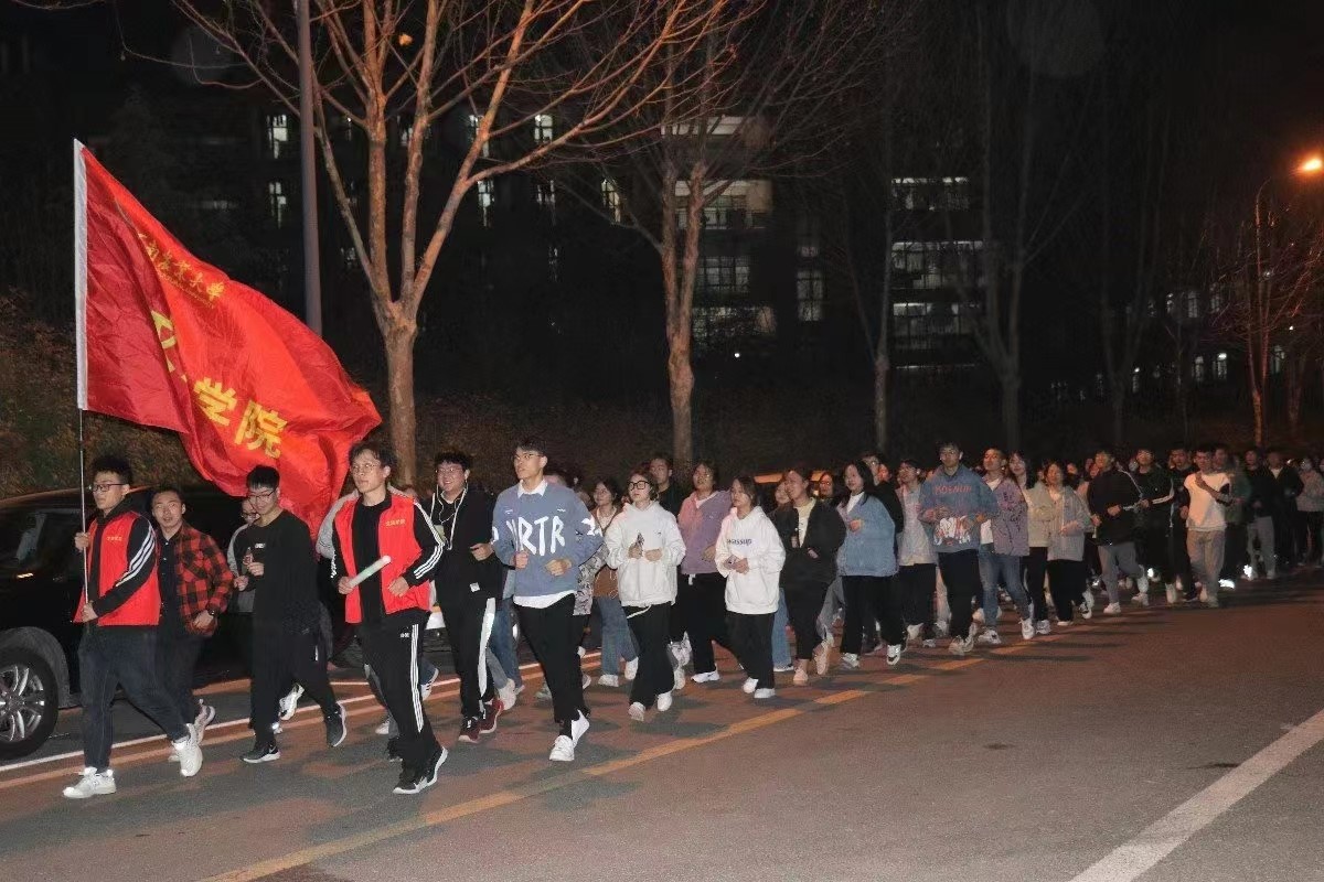 夜跑活动起于菊潭楼下,环绕校园一周,全程约两公里。学生们手持荧光手环,步调整齐,精神抖擞,他们积极锻炼、迎风奔跑的姿态展现了太阳城App 积极向上、风华正茂的学子风范。