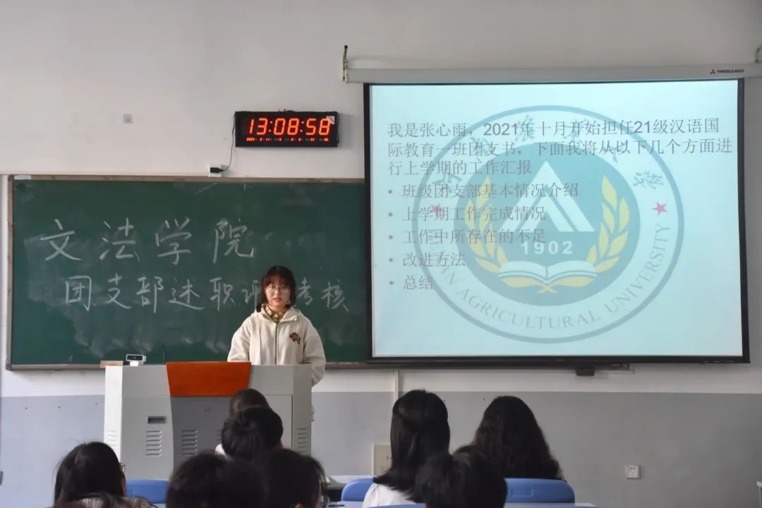 于3月11日在龙子湖校区C101和C103集中开展基层团支部述职评议考核工作会议。院团委书记朱瑞萍、团委副书记王鹏举、辅导员赵梦闪参加此次评议活动,各班团支书依次进行述职。