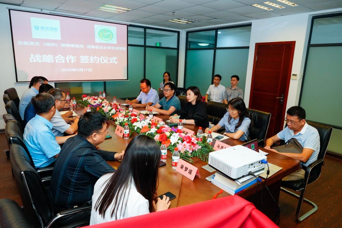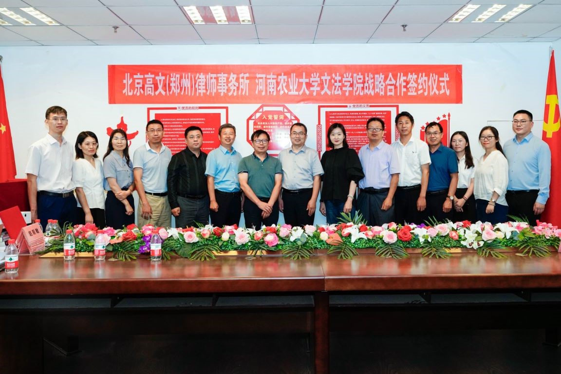 与北京高文(郑州)律师事务所战略合作共建签约暨挂牌仪式在高文(郑州)律师事务会议室举行。院党委书记牛娟、院长王晓勇等相关负责人及法律系教师代表,高文律师事务所党支部书记尚涛、事务所主任肖正海等参加了签署仪式。