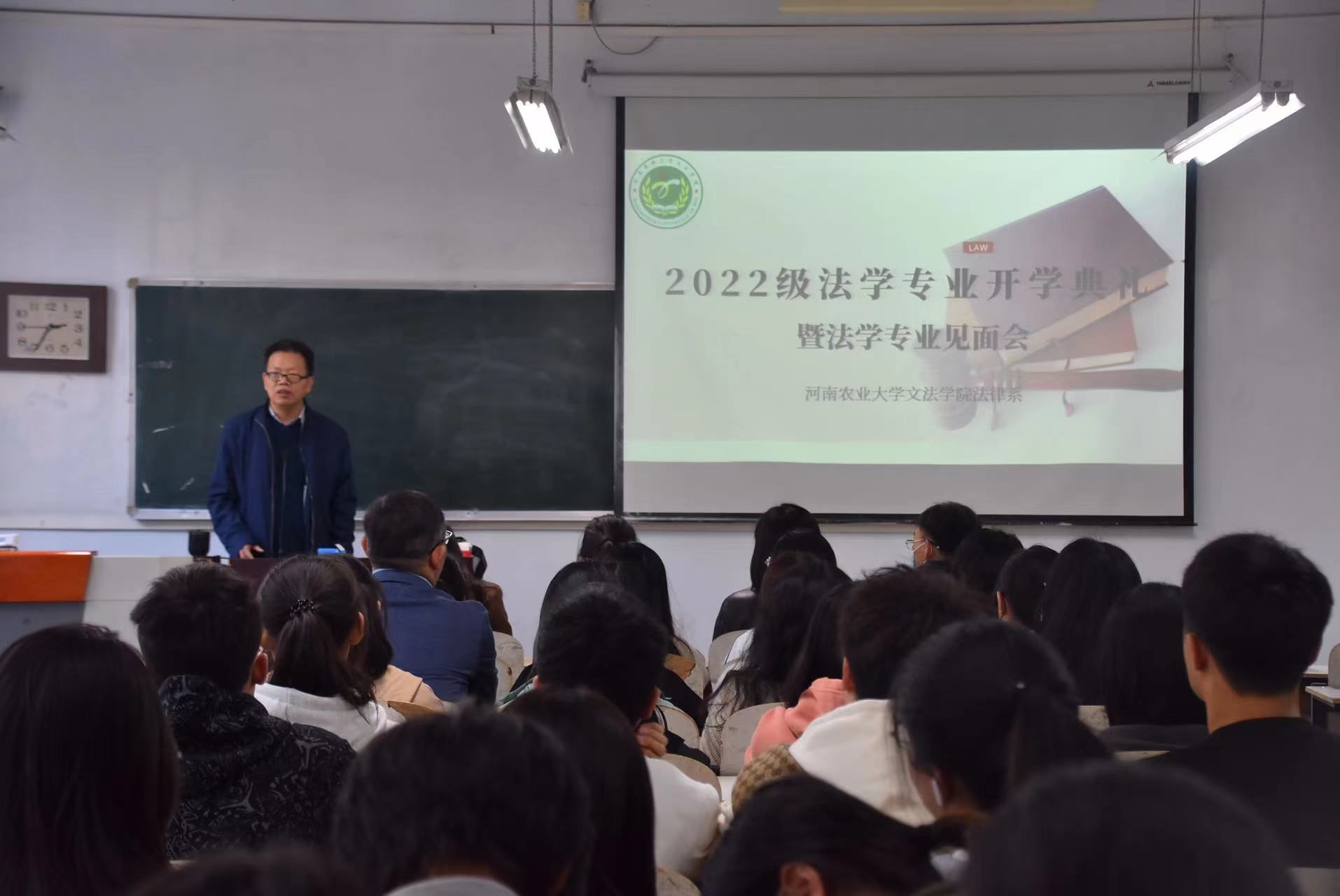 在桃李园举行2022级法学专业开学典礼暨法学专业见面会,副院长杨红朝、法律系教师及2022级法学专业新生参加了此次会议,会议由法律系主任韩宁主持。