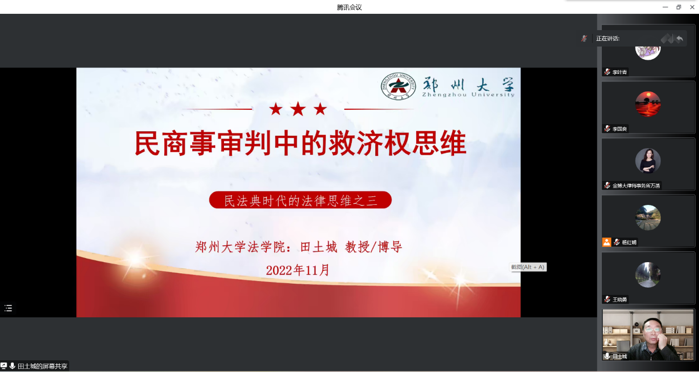 通过线上会议的方式举办以“民商事审判中的救济权思维”为主题的学术报告。本次报告由郑州大学田土城教授主讲,太阳城App